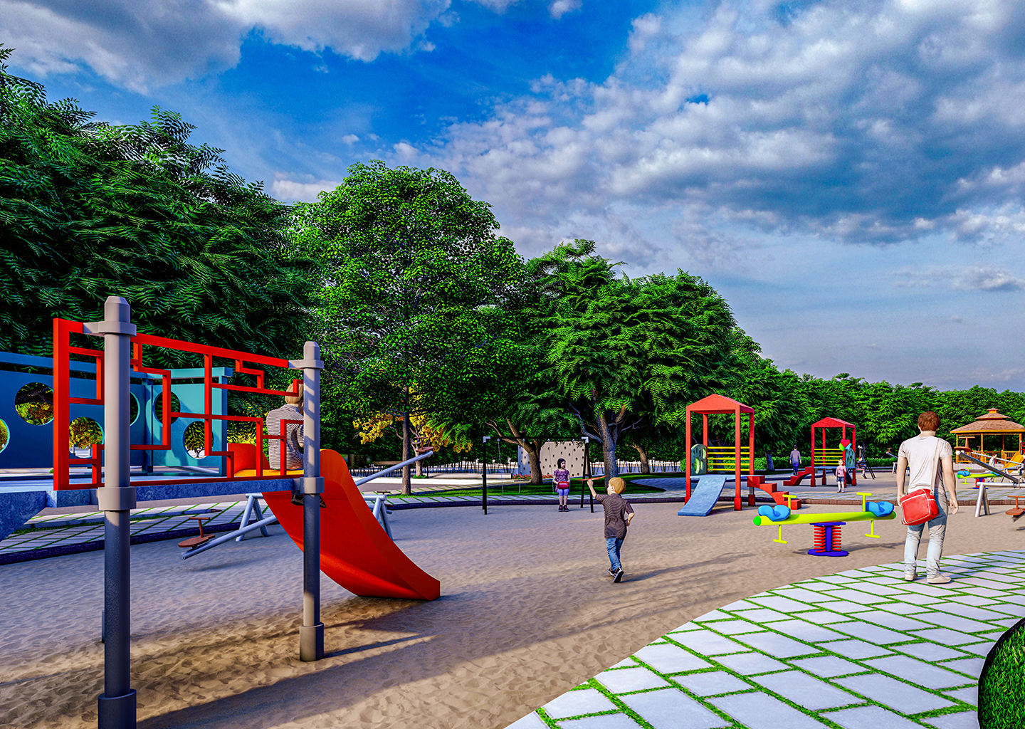 - Infrastructure: Solar streetlights, drainage systems, wide roads